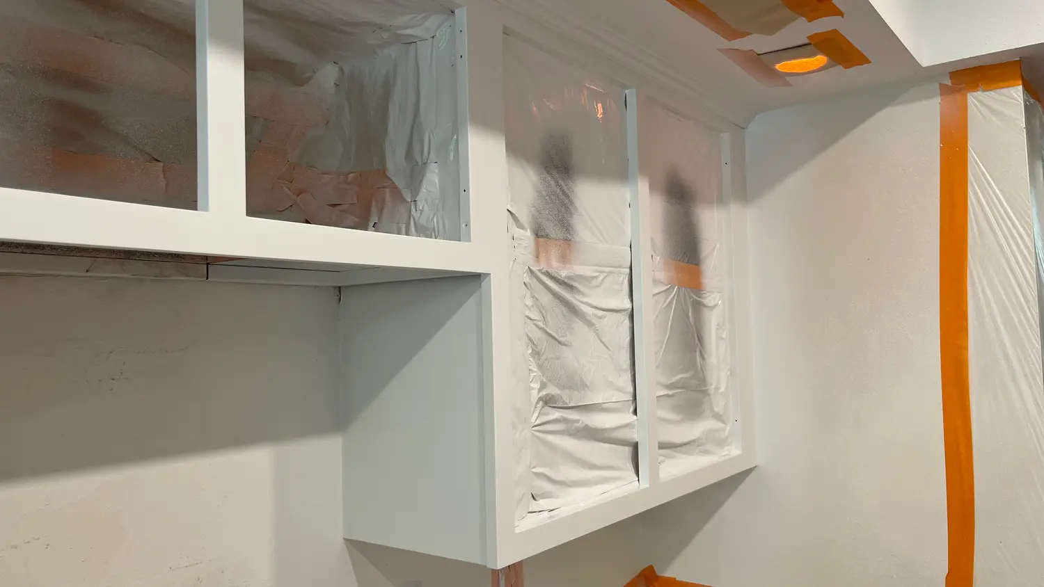 Cabinets reassembled with care and precision.